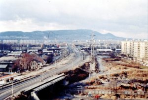 pályaudvar Duna felőli oldalán a Vizafogói lakótelep 1. üteme. A
