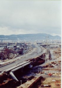 a híd alatti összekötő vágányt és a teherpályaudvart az átépített híd