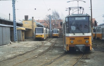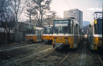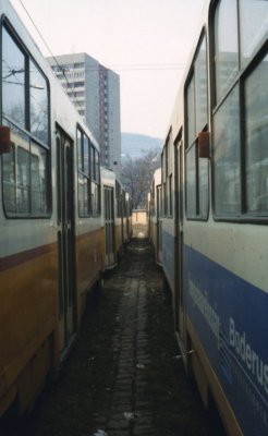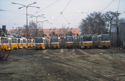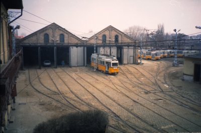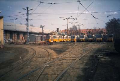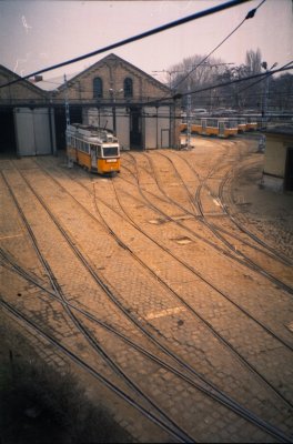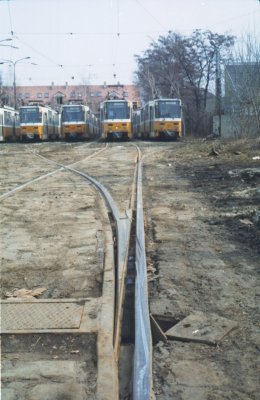 A szabadtéri tároló szemből. Itt az 1-es villamosokat tárolták.